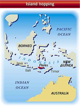 In this week’s Nature (vol 392, p 173) the researchers say that even at the lowest sea levels, to reach Flores from Java would have involved three crossings between islands, each of at least 19 kilometres. To have established a community on Flores, says Morwood, dozens of individuals would have had to cross together. He suspects that to organise this they must have had basic language abilities.