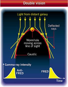 might explain some bursts. Wormholes would have negative mass, and exert a