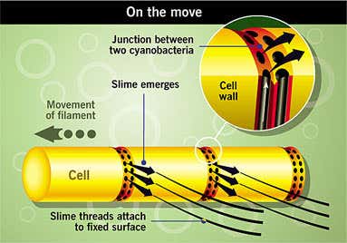 propellers called flagella. But the movements of alga-like cyanobacteria, which