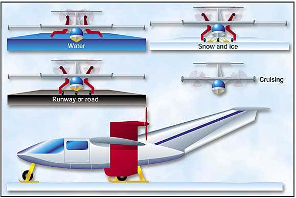 they may have wheels and floats, or wheels and skis, but not all three. But