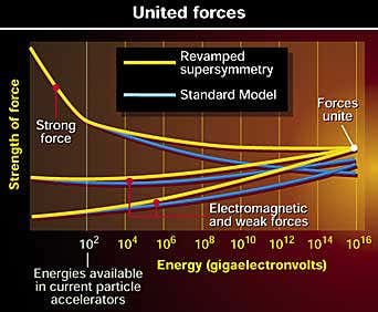 The result helps supersymmetry unify all the known forces. Many scientists believe that in the energetic Universe a split second after the big bang, the electromagnetic, weak and strong forces all acted as one. The Standard Model of particle physics doesn’t predict this.