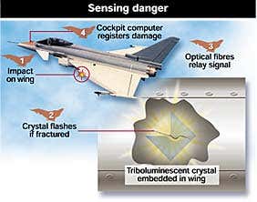 use crystals that glow when fractured to warn of such unseen damage.