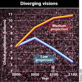 2100, it could be back below today’s figure of six billion and by 2150 the