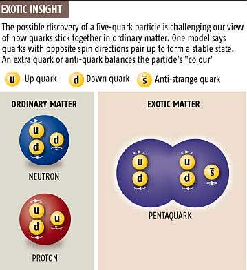 The full significance of the pentaquark was not immediately clear. The particle is not in direct conflict with the theory that describes quarks, and early in 2003, physicists were divided between those who didn’t believe it was real, and those who didn’t care. But that’s changed, because the harder physicists think about it, the more of a challenge the pentaquark presents to the picture most physicists have of ordinary matter. And although some physicists are still not convinced by the fleeting glimpses in particle accelerators, many say the pentaquark isn’t going away – so they are going to have to knuckle down and deal with it.