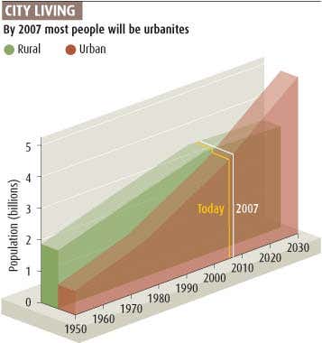 This rural to urban migration can now be seen in scores of cities across the globe. And it has brought us to a pivotal moment in human history. In 1900, most people lived in the countryside, with a little over 10 per cent of the world’s population living in cities. From next year, the UN Population Division predicts that for the first time in history, more people will live in cities than in the country (see Graph), and the biggest growth will be in “megacities”, with populations over 10 million.