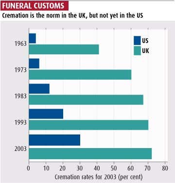 ADVANCES in science, technology and medicine have deeply influenced attitudes to death, old age and ways of dealing with the dead. This has happened right across the world, though in different ways. Towards the end of the 19th century, the UK, for example, was one of the first western countries to foster modern cremation. With the industrial revolution in full swing, cremation fitted ideas of progress, and many people, especially doctors, saw it as a more hygienic alternative to leaving bodies to rot in the ground. The popularity of the practice grew, and by the mid-1960s it had overtaken burial as the dominant funeral form. At the turn of the 21st century, some 70 per cent of British dead were cremated (see Chart).