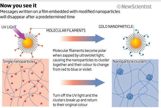 THIS article will self-erase in 10 seconds. At least it would if it had been written on a film that exploits the colour-changing ability of nanoparticles. The technology could make it possible to create documents that wipe themselves clean after they’ve been read.