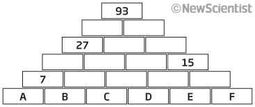 This is Pascal’s pyramid. Every stone has a positive number on it and, apart from the base stones, each stone’s number is the sum of the numbers of the two stones on which it rests. The numbers of the six base stones are all different.