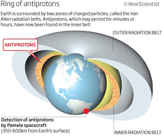 Satellites had already discovered positrons – the antimatter partners of electrons – in the radiation belts. Now a spacecraft has detected antiprotons, which are nearly 2000 times as massive.