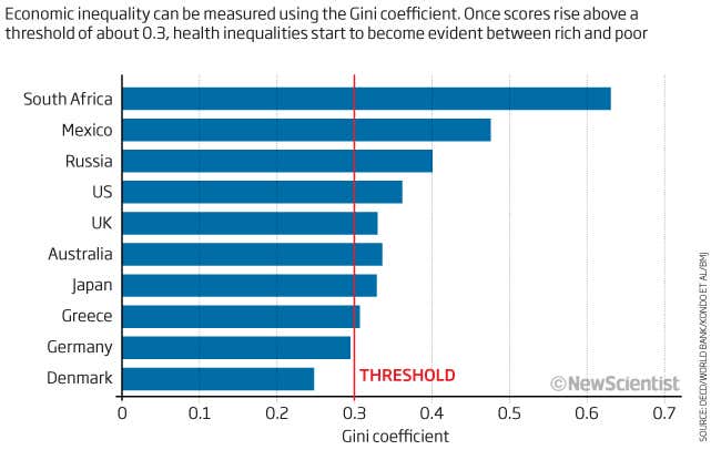 In the past two decades, more than three-quarters of the countries belonging to the Organisation for Economic Co-operation and Development have seen a growing gap between the rich and poor. “It’s not just the idea of a threshold, but also how inequality has grown over time,” Subramanian says. He and his colleagues stress that as inequality increases, more research on the link with poor health is urgently needed.