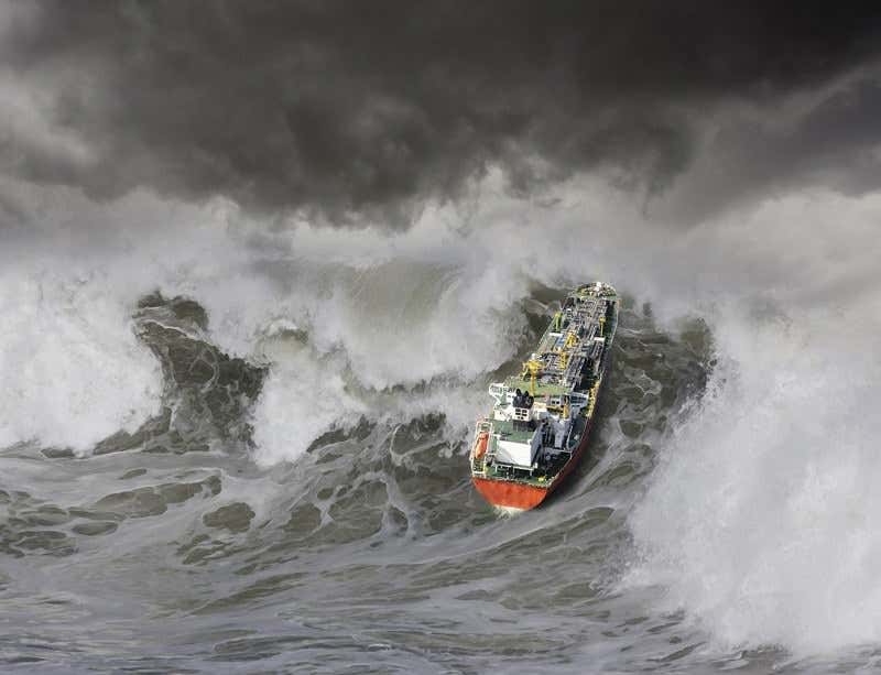 “Descending the first monster wave, the boat was pitched into a second and possibly a third behind”