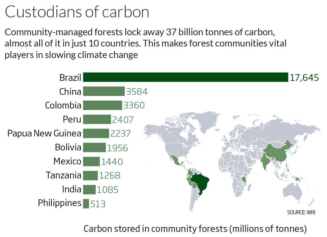 It now seems community forests have a significant role to play both in protecting biodiversity and in locking away carbon that could cause climate change – some 37 billion tonnes of it, the report says (see map). “Strengthening community forest rights is critical to mitigating climate change,” says Jennifer Morgan of the World Resources Institute.FIG-mg29802901.jpg