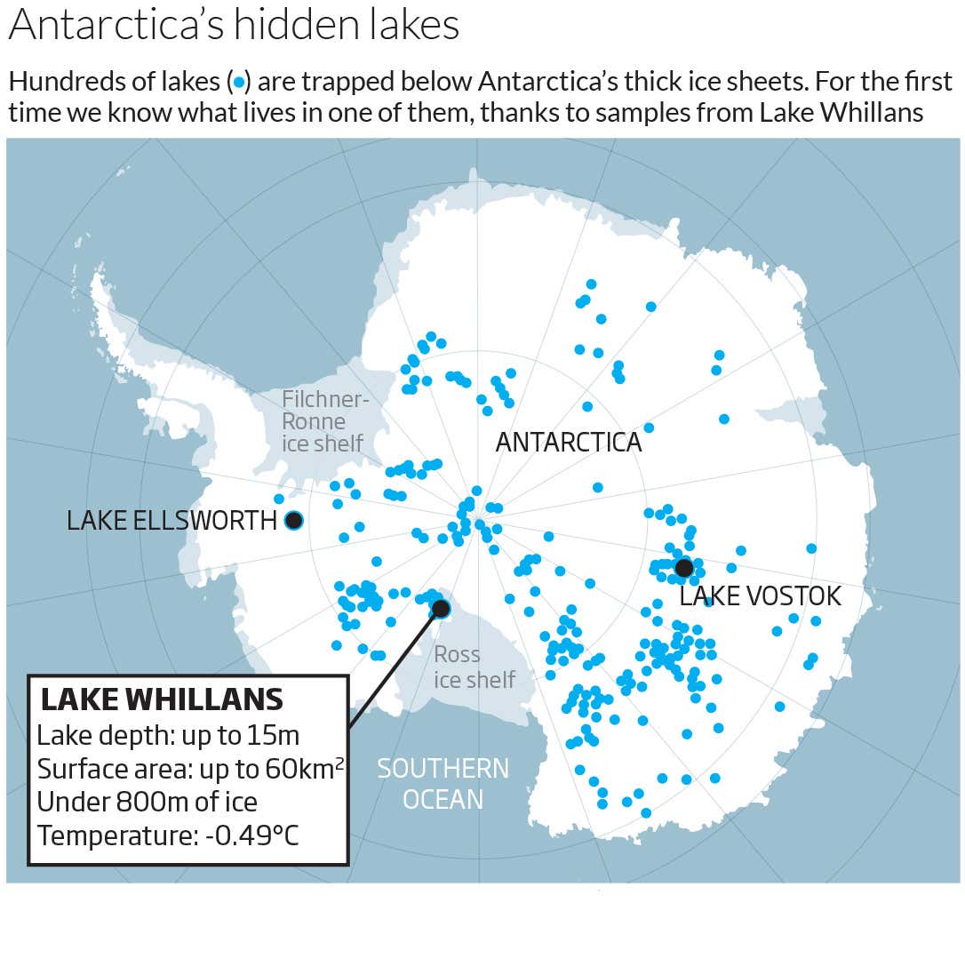 “Our discovery proves that water is habitable space, even if it’s at sub-zero temperatures and there is no sunlight,” says John Priscu of Montana State University in Bozeman. He co-led the US team that drilled into Lake Whillans, 800 metres beneath the west Antarctic ice sheet.