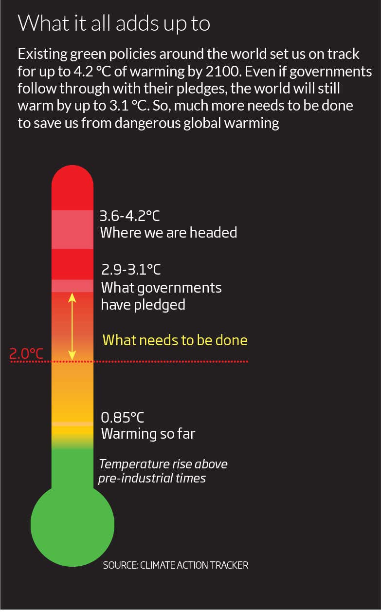 Cash is also trickling in for the Green Climate Fund to help poor nations – the innocent parties in global warming – adapt to changing climate. But the promises are just under $10 billion – far short of the $100 billion a year that rich nations agreed to mobilise by 2020 during the ill-fated negotiations in Copenhagen in 2009. The UN Environment Programme says three times that will be needed before mid-century.