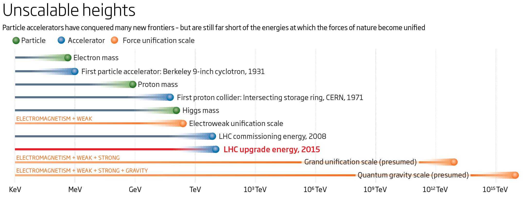 Particle physicists measure out territory using energy as their yardstick. Through Einstein’s famous equation E = mc2, smashing particles together at high speed converts their mass into pinpricks of enormous energy that can in turn form other, more massive particles. Our universe…