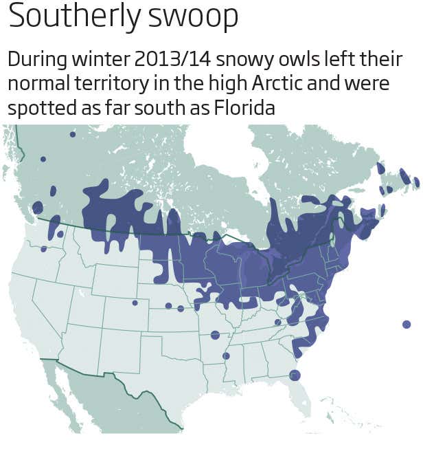 AS AUTUMN 2013 drew to a close, naturalist Scott Weidensaul hung up his outdoor gear and settled down for a quiet winter at home in Pennsylvania. He was writing a book about owls and planned on finishing it before nature perked up again in spring. But he hadn’t reckoned on the biggest invasion of snowy owls for a century. As reports of sightings flooded in from eastern Canada and the north-eastern US (see diagram), Weidensaul and other owl enthusiasts swung into action. “We all knew we’d never get such an opportunity again,” he says.