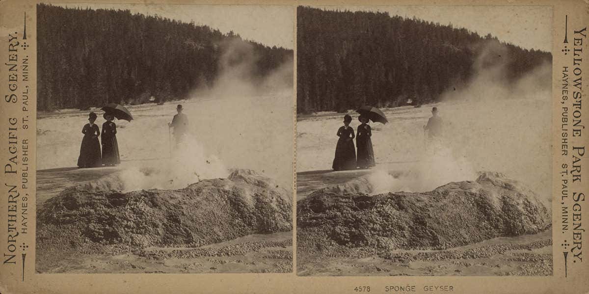 Photos from the late 1800s invited people to visit the still-wild places and encouraged politicians to set them aside for conservation. A silver print captures a rugged canyon in Arizona, while Yellowstone’s Sponge Geyser around 1883 figures (both below). There is also a 2014 print of waterfalls in Yosemite. Symbolic images like these influenced people’s expectations for the parks, says Jamie Allen, the exhibition’s curator. “Somehow, it means as much to us as the actual landscape,” she says.