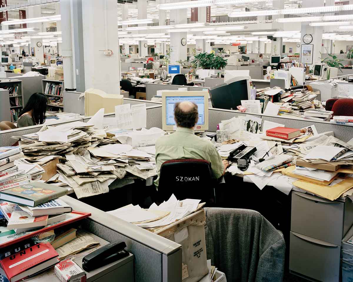 Steacy’s images show the hollowing out of the 18-storey art deco building that housed the broadsheet from 1925 to 2012; a reduced staff moved to a single floor of an office block after merging operations with a sister title. For Steacy, the Inquirer is a microcosm of a world in which automation and the internet have the power to change society, sometimes for the worse.