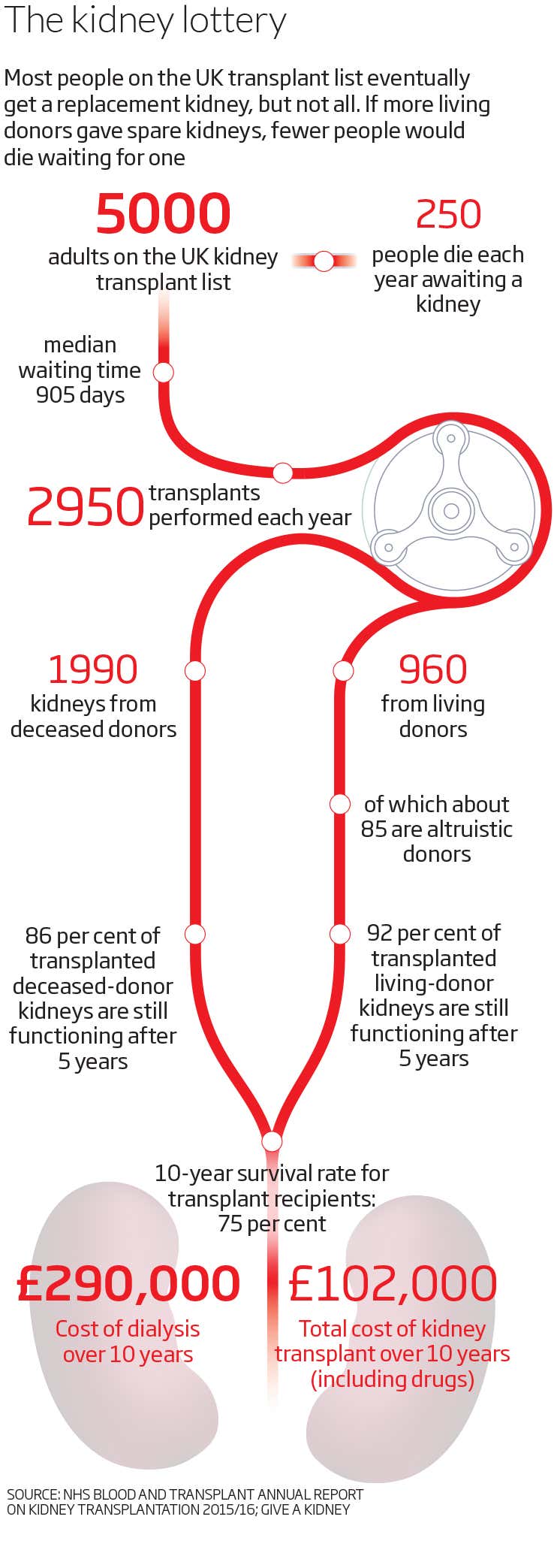 Another factor that deters people is the cost. In the UK the NHS reimburses donors for time taken off work and their travel expenses. But the average outlay for US donors is about $2000, mostly in travel and hotel bills. Their generosity, meanwhile, can save tens of thousands of dollars in the costs of dialysis (see graphic). This has led to a debate about how to compensate donors without raising the spectre of selling organs, which is illegal in most countries. To get around this, Australia has just introduced a law to reimburse donors’ expenses and provide nine weeks of paid leave from work. About half of US states also give some paid leave. There are also more non-financial incentives that could be tried, says Burnapp. She is trialling a new system at her hospital to make the donor approval process faster and less bureaucratic.