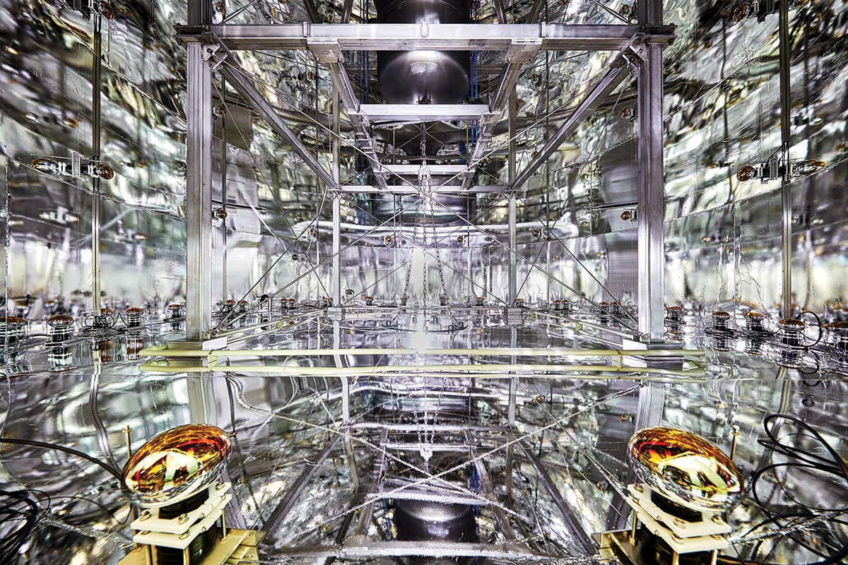WHENEVER the XENON1T experiment is running, this hall of funhouse mirrors becomes like a moat, protecting the search for dark matter. The 10-metre-high water tank, the inside of which is pictured, surrounds a container with 3.5 tonnes of pure liquid xenon from unwanted particles. This enables it to focus on looking for weakly interacting massive particles (WIMPs), a leading candidate to explain dark matter.