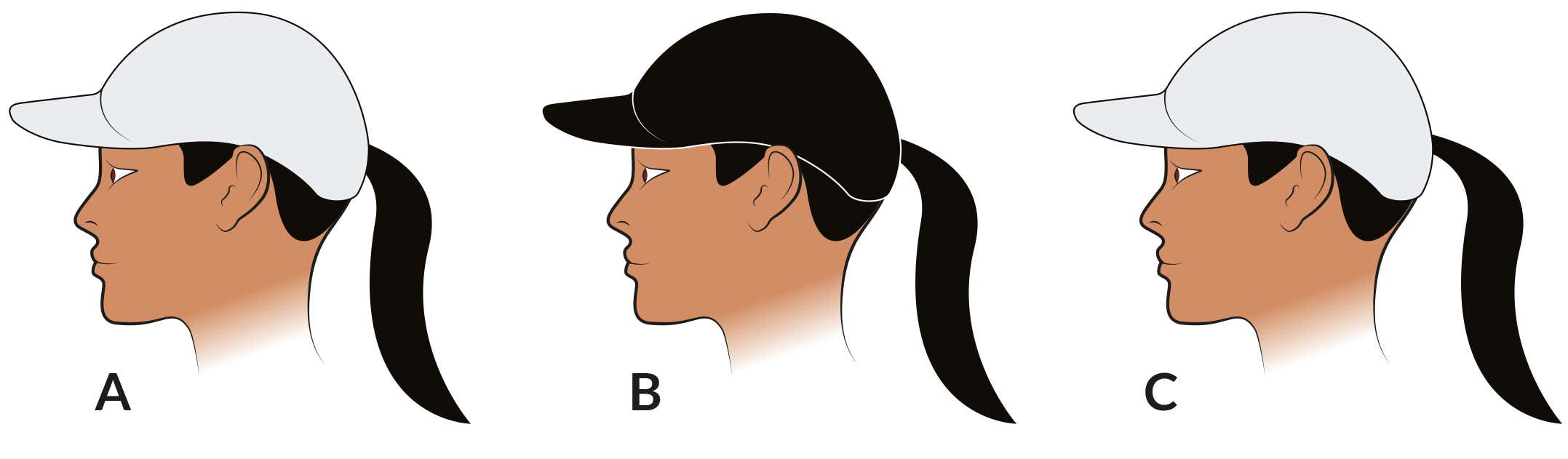 Ariana, Beverley and Cassie are standing in a line. They know that two of them are wearing black hats and one is wearing a white hat – or vice versa – in an arrangement like the one shown above.