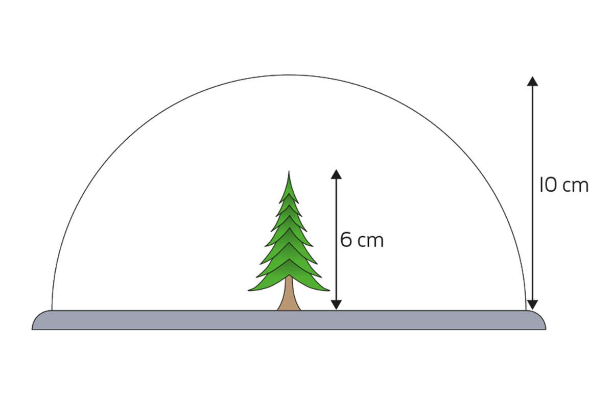 I have a snow globe that is a hollow hemisphere. At its highest point, it is 10 centimetres tall, and in the centre stands a tree that is 6 cm tall. How far away from the centre can the tree be moved and still stand upright?