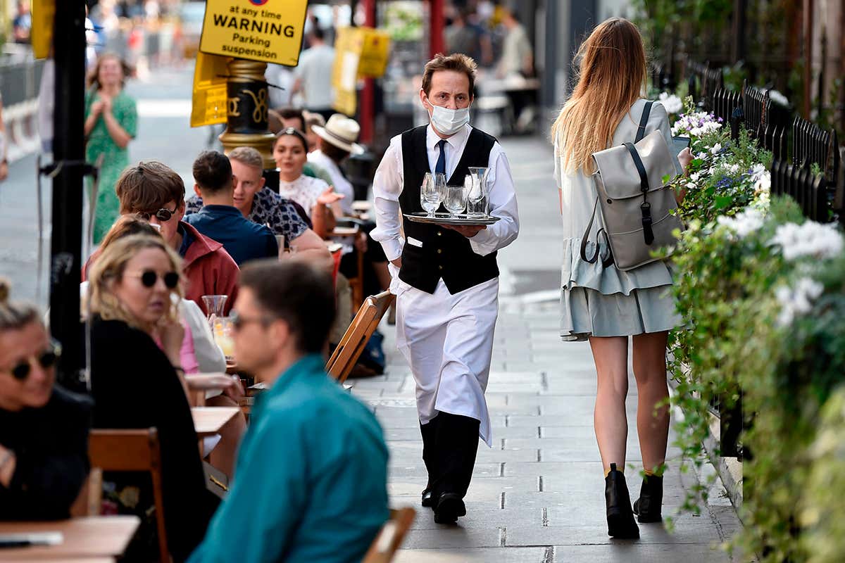 A waiter in central London, before restrictions were lifted Daniel Leal-Olivas /AFP via Getty