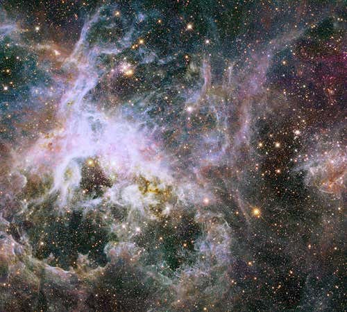 Even arachnophobes will fall for this colourful view of 30 Doradus, also known as the Tarantula nebula. Made using two cameras on the Hubble Space Telescope, the infrared image offers the most detailed look yet at this turbulent stellar birthing ground.