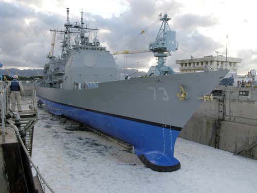 The navy is making a number of smaller changes to its existing fleet that together add up to significant increases in fuel efficiency. New antifouling coatings like those applied to the guided missile cruiser USS Port Royal (left) help keep the hull free of barnacles and other marine organisms. This reduces drag and can increase fuel efficiency by as much as 12 per cent.