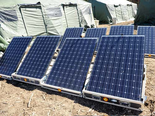 Instead of hauling fuel to the front lines, US soldiers are beginning to get their power from the sun. Instead of diesel fuel, photovoltaic panels paired with batteries provide continuous power to marines in the field. The system, known as the Ground Renewable Expeditionary Energy System (GREENS), is currently being used at US forward operating bases in Sangin district, Afghanistan.