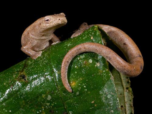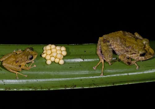 Rain frogs, like these unidentified Pristimantis individuals, are dependent on moist habitats as they lay their eggs in trees.
