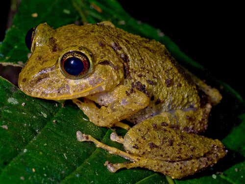 This unidentified rain frog of the genus Pristimantis was found in Cerro Pata de Pájaro in western Ecuador.