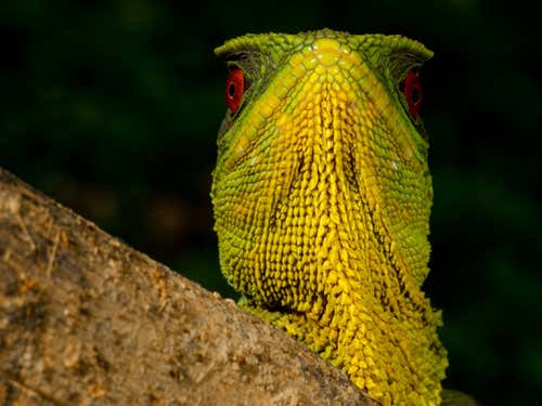 This bright male O’Shaughnessy’s Dwarf Iguana, Enyalioides oshaughnessyi, was discovered in a cloud forest.
