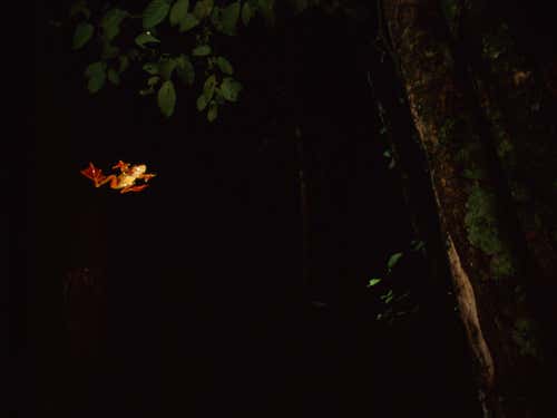 The harlequin tree frog (Rhacophorus pardalis) of south-east Asia glides using the webbing between its toes. Several frog species are capable of gliding but they should not to be confused with levitating frogs.