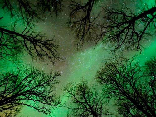 This picture, taken by Fredrik Broms, shows the Northern Lights seen looking up through the trees of the boreal forest on the island of Kvaløya, Norway. It was highly commended in the Earth and Space category.