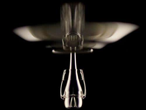 Water shoots up into the air in this “ultrasonic fountain”, which was created by focusing high-frequency sound on a small volume of water just beneath the water’s surface. The sound waves resulted in large pressure drops as they passed through the water, causing some regions to become so diffuse the water turned from liquid to vapour. These bubbles, as well as the flow of fluid driven by the sound vibrations, combined to create this micro-geyser.