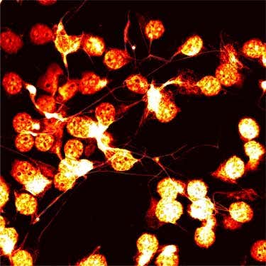This culture of mouse brain cells is being used to research the mechanisms that underlie Alzheimer’s disease. They are of a type believed to be involved in the formation of new memories.