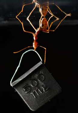 Oecophylla smaragdina can carry more than 100 times its own body weight while upside down on a smooth surface, thanks to its sticky feet.