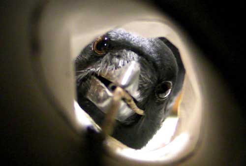This New Caledonian crow is using a stick to get food out of a small hole, demonstrating a skill used to “fish” for wood-boring beetle larvae in decaying tree trunks.
