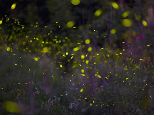 Despite their name, fireflies are actually beetles which use an enzymatic reaction involving a chemical compound called luciferin to produce their typical greenish flashing light. As well as possibly warning predators about their toxicity, it is thought the main purpose of their flashing abdomen is to attract mates.