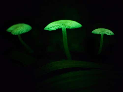 It’s not only animals that have evolved bioluminescence in their chemical toolkit. These mushrooms, found in tropical forests, are the fruiting body for Mycena chlorophos – one of over 70 identified species of glowing fungus. It is not known how or why these fungi emit light but it is thought that the light might attract nocturnal foraging animals to aid dispersal.