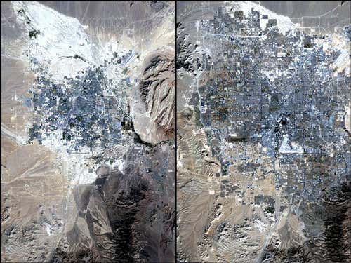 The population of the Nevada city has quadrupled since 1980. The left-hand picture is Vegas in 1984, the right was taken last year.