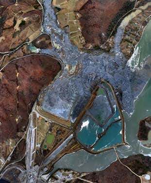 This picture shows the aftermath of a dyke failure at a Tennessee power plant in 2008, when around 4 billion litres of coal ash slurry gushed into nearby rivers.