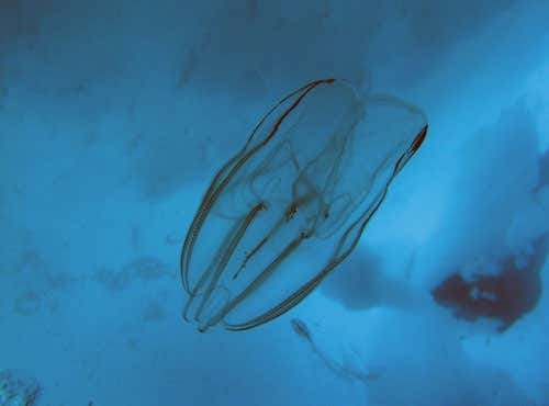 This jewel-like arctic ctenophore, Bolinopsis infundibulum, thrives just beneath the ice, in the coldest waters found in any ocean.