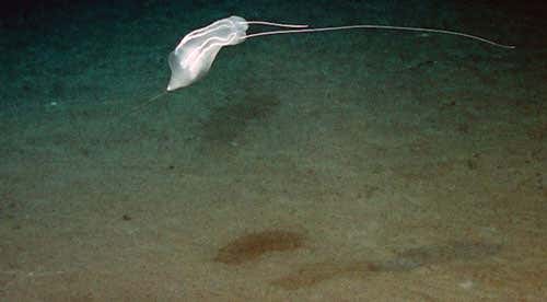 A new species of benthic comb jelly flies like a kite on the end of two long “strings” attached to the ocean floor. It was found an astonishing 7217 metres beneath the surface in the Ryukyu Trench near Japan.
