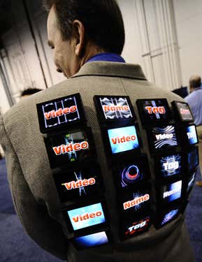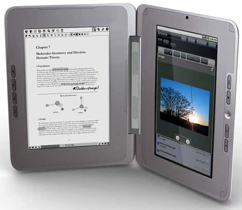 CES was awash with e-book readers, including the Entourage Edge pictured here. The two “pages” of this book differ: on one side is a 24.6-centimetre greyscale screen, on the other a slightly larger 25.6-centimetre full-colour screen. Users can write on either “e-page” with a stylus.