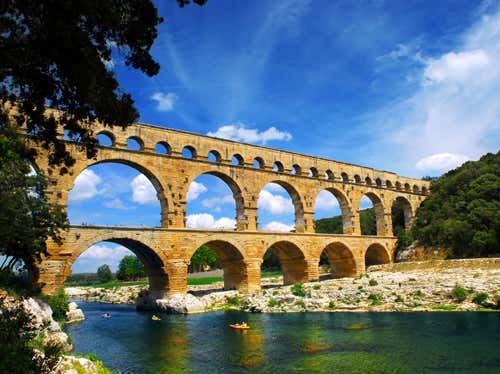 The Romans built many aquaducts like this one in southern France near modern-day Nîmes. At its height, the Roman Empire controlled almost all of Europe, western Asia and north Africa. But by around 400 AD it had splintered into the western Roman empire, initially centred on Rome, and the eastern empire based in Constantinople – now Istanbul, Turkey.