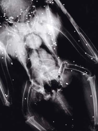 This X-ray of a North American golden eagle reveals the bird is peppered with gunshot, in direct contravention of the US Bald and Golden Eagle Protection Act, a federal law enacted in 1940.