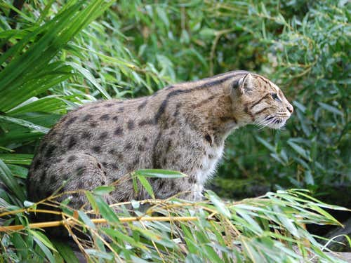 The Fishing Cat (Prionailurus viverrinus) lives in several locations in south-east Asia. It has been moved from vulnerable to endangered, because of a severe decline over the last decade. It is a medium-sized cat and a skilful swimmer, living mainly in wetland habitats. It is at risk mainly because of habitat loss: over 45% of protected wetlands in south-east Asia are considered threatened. (Image: Mathieu Ourioux)