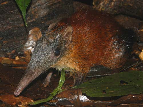 The Grey-Faced Sengi (Rhynchocyon udzungwensis) is a newly-discovered species of elephant shrew from Tanzania. It was only described this year, after being caught on film in 2005 in the remote Ndundulu Forest in Tanzania’s Udzungwa Mountains. It is listed as vulnerable, as it is known from only two areas, both of which are prone to fires – these are caused variously by drought and by humans from nearby settlements. (Image: F Rovero, Trento Museum of Natural Sciences, Italy)